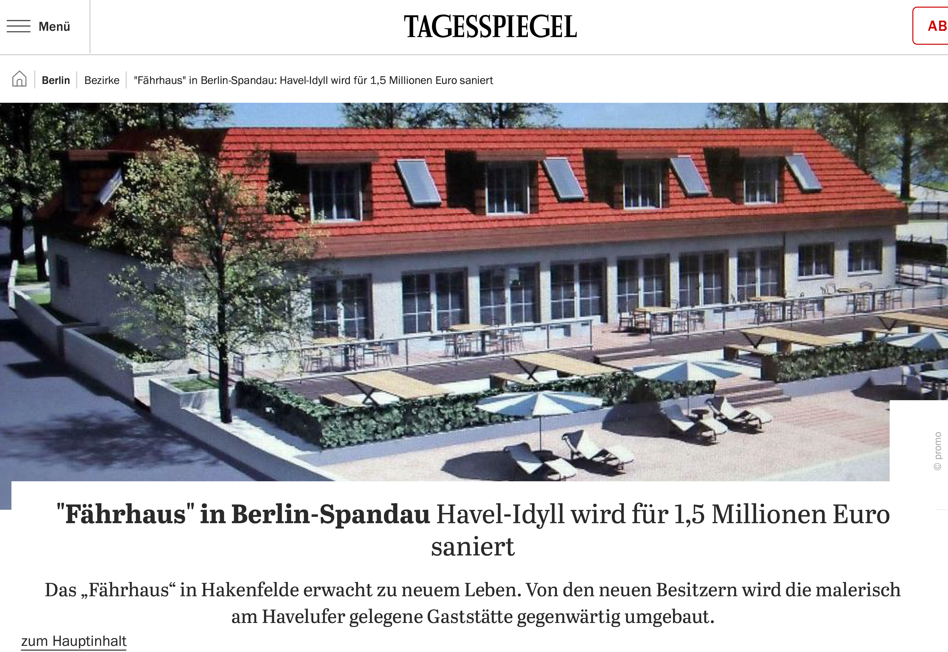Am Havelufer gelegen „Das Fährhaus“ in Hakenfelde ist ein Markenzeichen von Bezirk Spandau. Der eingeschossige Altbau wurde bis auf KG Decke abgerissen und ein Hotel-Restaurant mit See-Terrassen neu errichtet. Es wurden Insgesamt 21 Appartements und ein Restaurant geplant und errichtet. Außenanlagen mit Seeterrassen, Stellplätze und Bootliegeplätze wurden geplant und umgesetzt.
