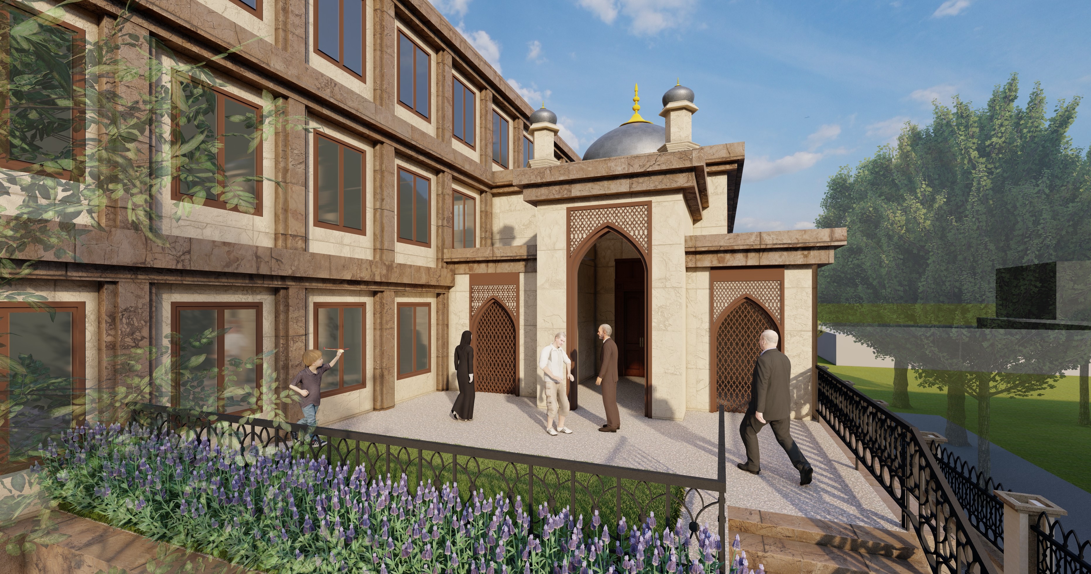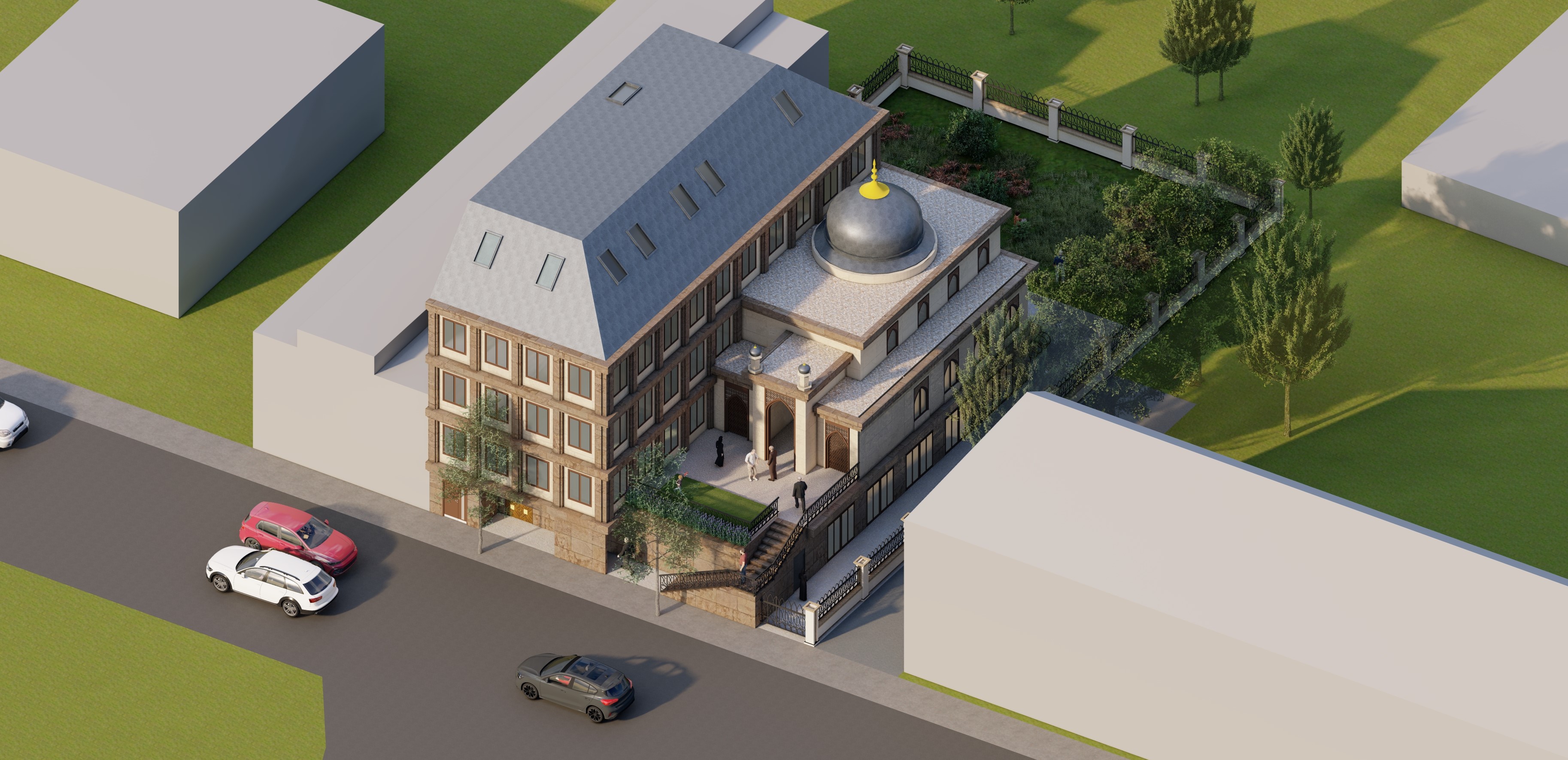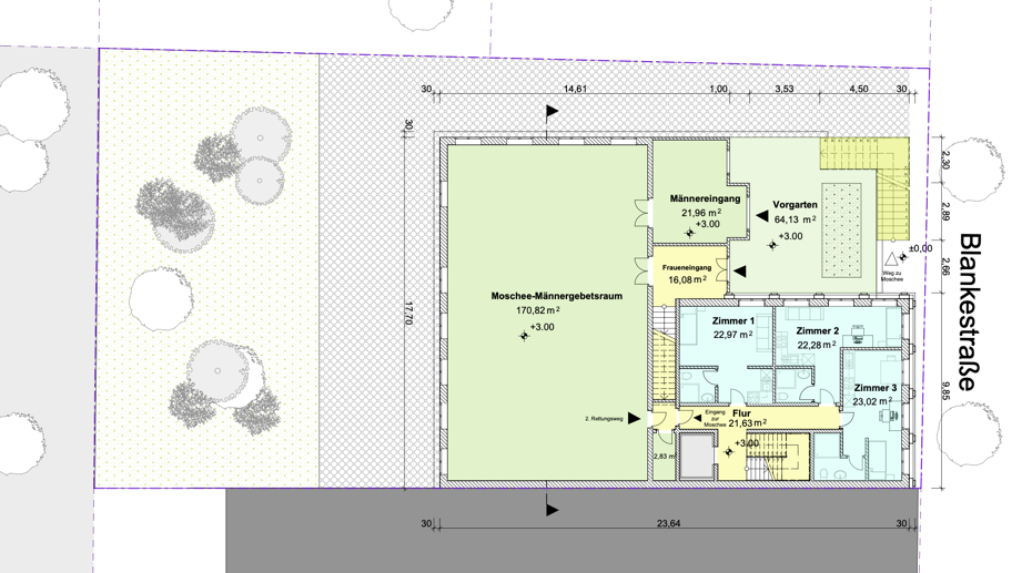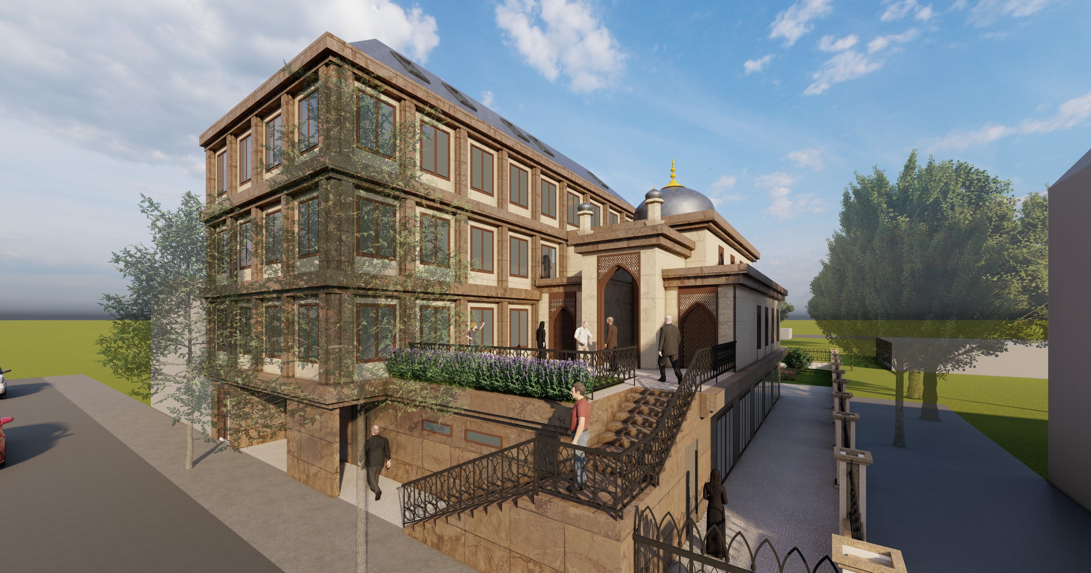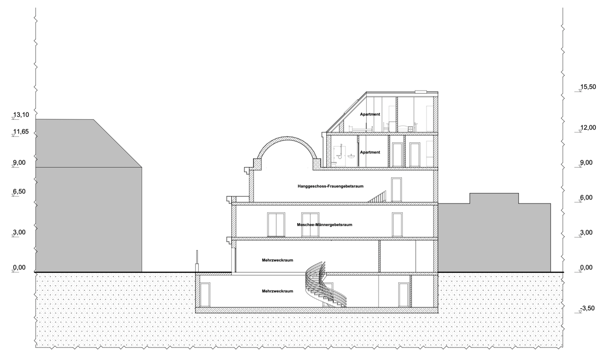 Das neue geplante afghanisches Gemeindehaus in Berlin Nord ist für soziale, kommerzielle und kulturelle Nutzung geplant. Auf dem ca. 1000m² großen Grundstück soll in geschlossener Bauweise ein vierstöckiges Gebäude mit Dachterrassen errichtet werden, das etwa 1400 m² Nutzfläche bietet. Die Nutzbereiche wie ein Hotel, eine Moschee auf zwei Ebenen mit Vorgarten und eine Mehrzweckhalle in zwei Ebenen sind für ca. 400 Besucher geplant.
