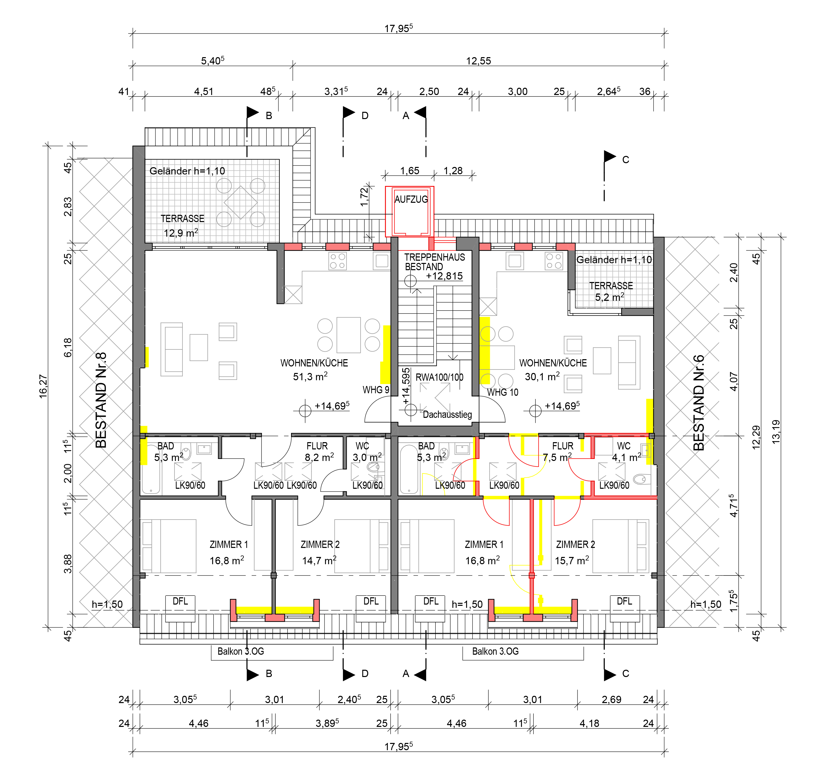 Wohngebäude | Dachausbau, Panorama Aufzug, Modernisierung