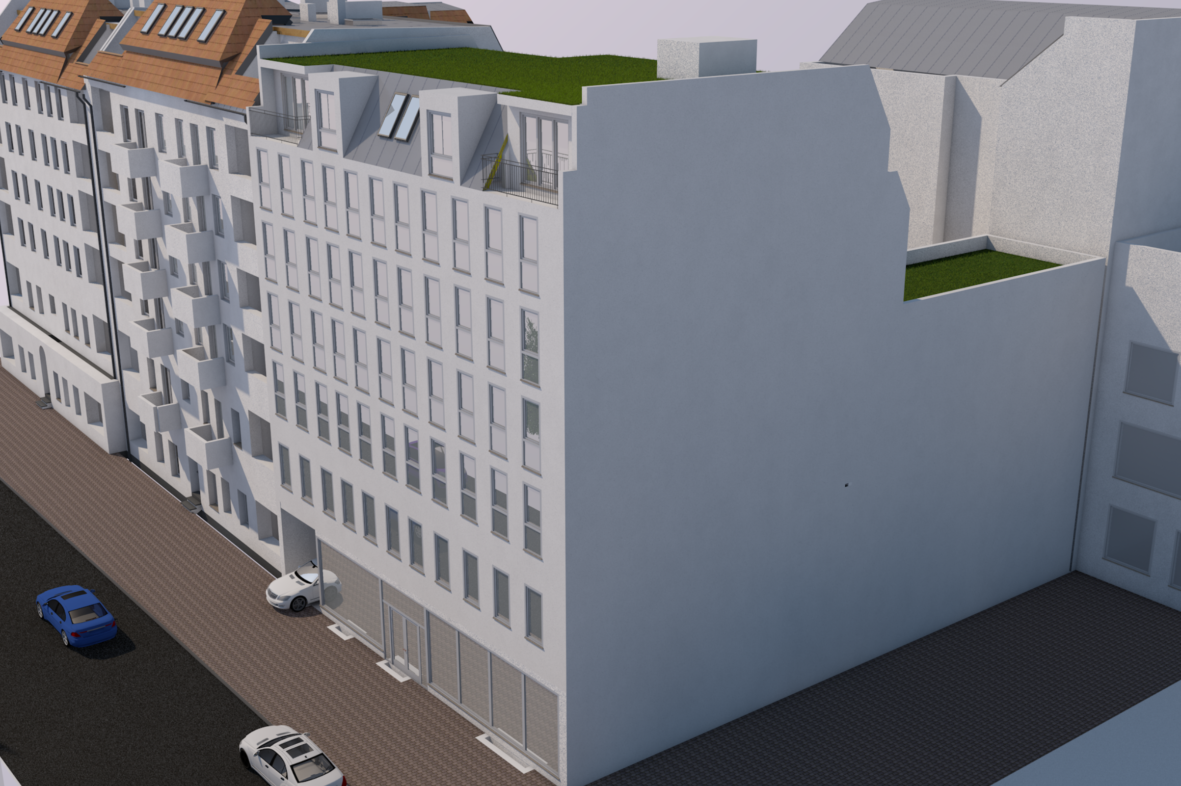 Restaurantdstück liegt in unmittelbarer Nähe des Rathausplatz Wedding. Auf dem Grundstück befindet sich ein zweigeschossiges Gebäude mit Untergeschoss, welches seit 60 Jahren als Ladengeschäft errichtet und genutzt wurde. Die neue Planung dient zu Aufstockung und Umbau für ca. 40 Wohnungen. Es sind 5 Stockwerke Baulücken schließende Aufstockung geplant und genehmigt.